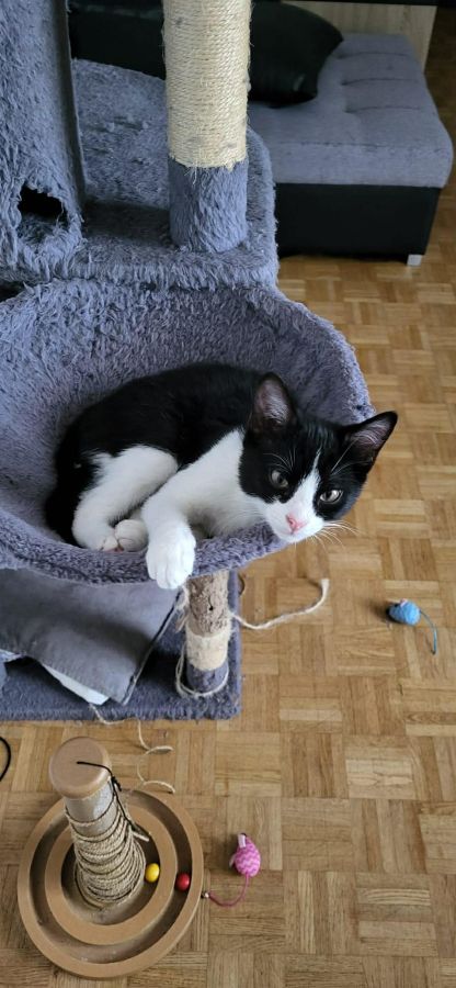 Atom porte parfaitement son nom : c’est un véritable concentré d’énergie ! Âgé de 3 mois et demi, ce jeune chaton est très joueur, curieux et dynamique. Il adore courir, sauter et transformer le moindre objet en terrain d’aventure. Derrière son tempérament vif se cache aussi un petit cœur tendre. Une fois la séance de jeu terminée, Atom apprécie les moments de calme et les câlins, et sait se montrer très attachant.
