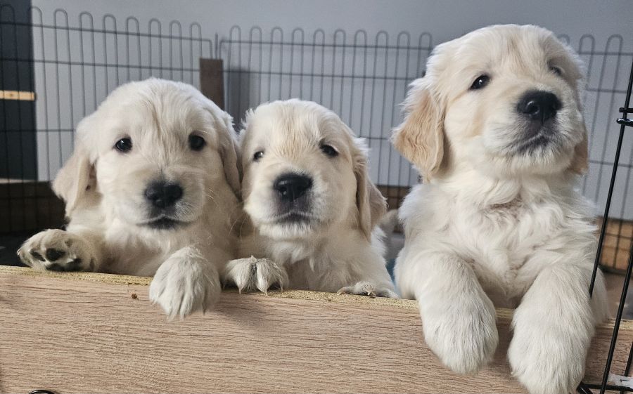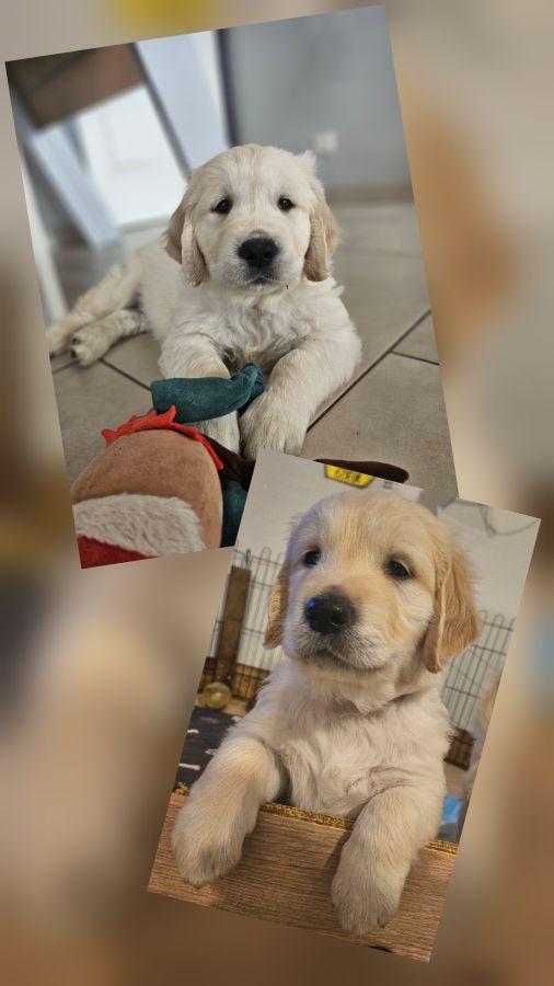 Nés le 25/12/2025, nous proposons 2 magnifiques mâles Golden Retriever LOF, disponibles à partir du 26 février 2026.