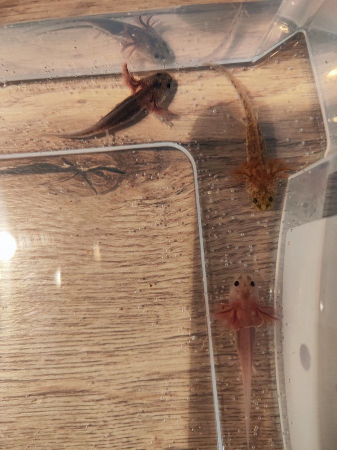 Dispo d'ici fin mars, jeunes axolotls couleur gold, mélanique copper et mélanique sauvage, ils seront prêts à l'adoption lorsqu'ils auront atteint 10cm.