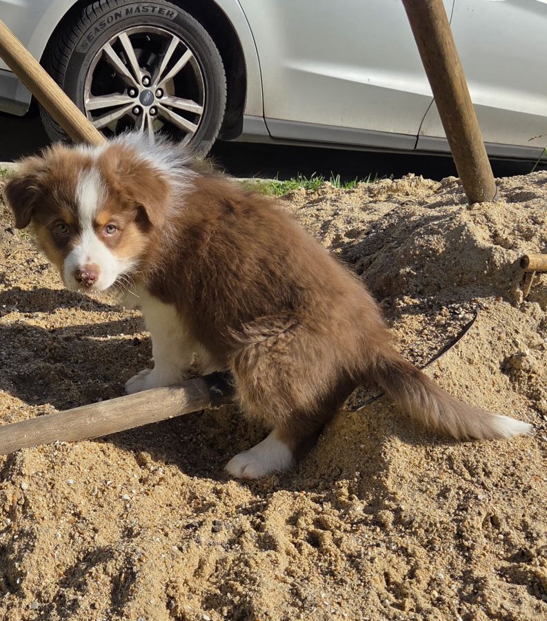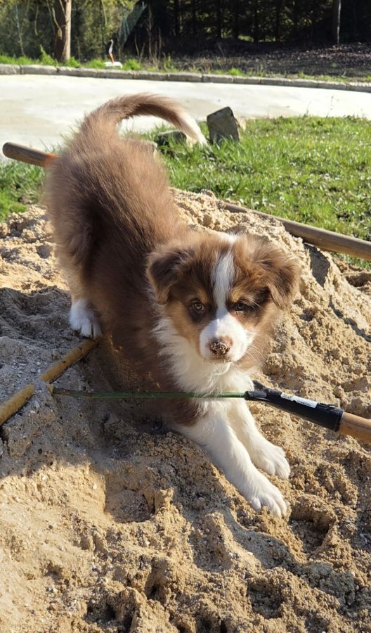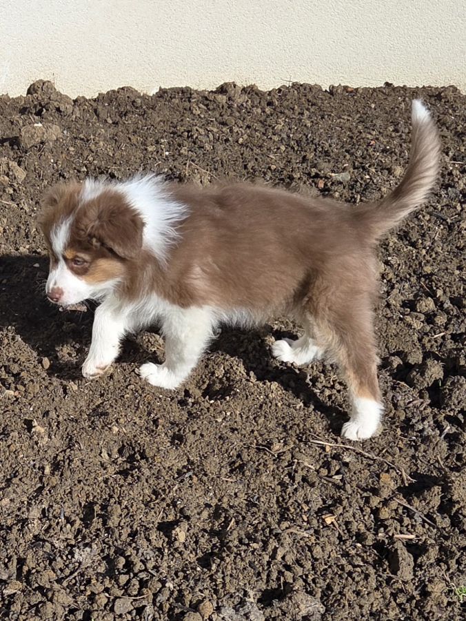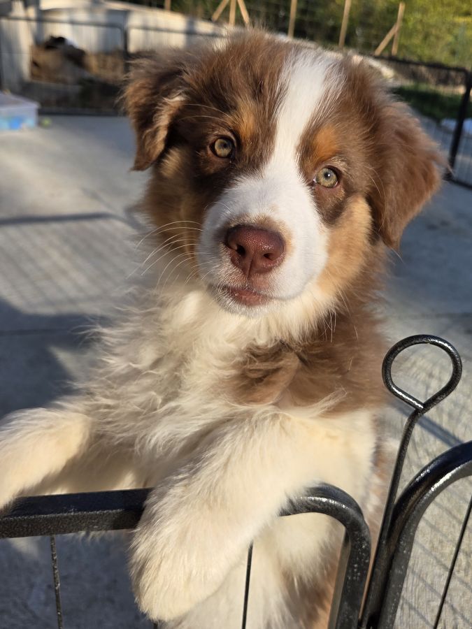 Magnifique chiot, berger Australien, mâle, rouge tricolore.