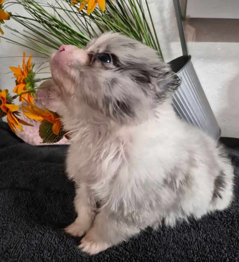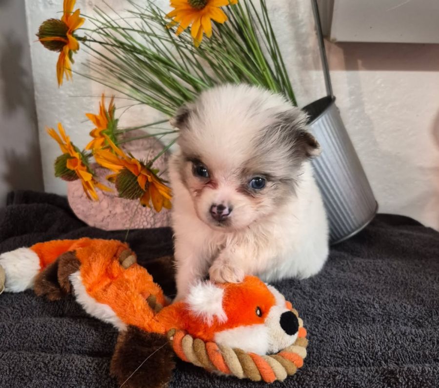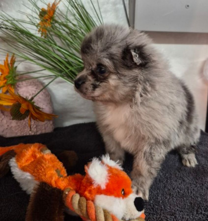 Adorables chiots pomchi nés le 19 janvier 2026 cherchent une nouvelle famille, il y a :