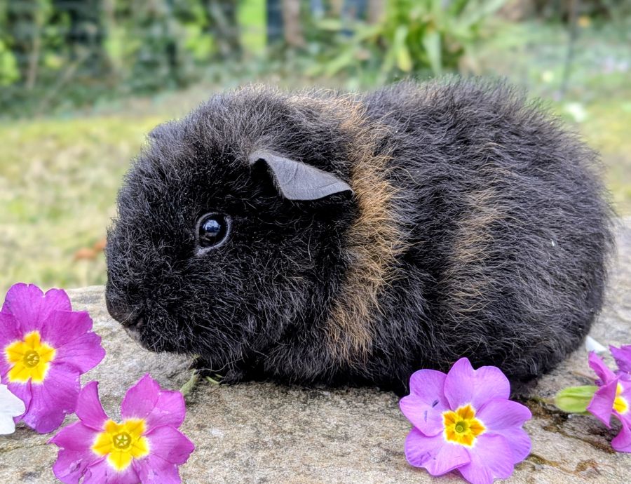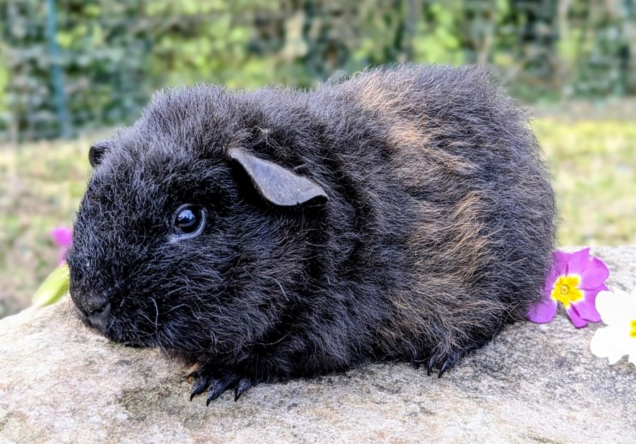 Deux bébés cochons d'Inde mâles rex noir et doré nés en janvier disponibles chez les Chons de la Bambouseraie dans le 77.