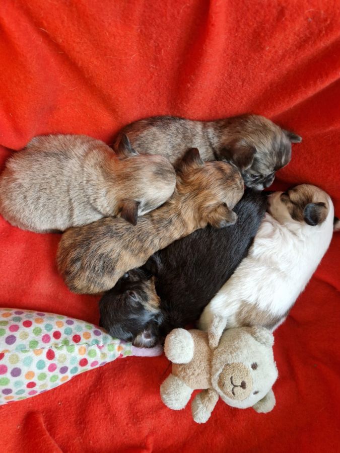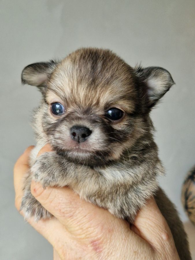 A réserver adorables petits bébés mâles chihuahua à poils longs, très bien typés, non inscrits au lof, nés le 20 janvier 2026.
