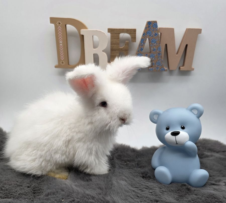 Adorable mâle blanc yeux bleus angora anglais pure race disponible à partir du 16 mars.