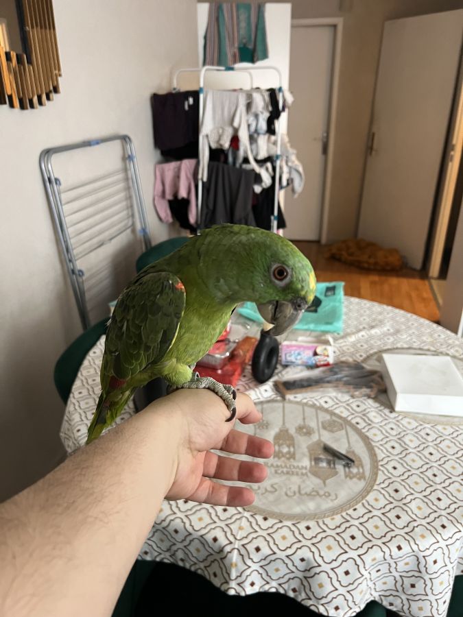 Femelle de 7 mois élevé à la main elle commence à dire des mots. Bagué avec ces papiers