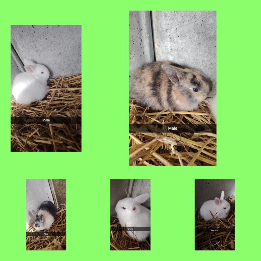 Bébés et adultes Deux mâles bélier nain Femelle bélier naine Deux femelles naines oreilles droites Mâle angora n...