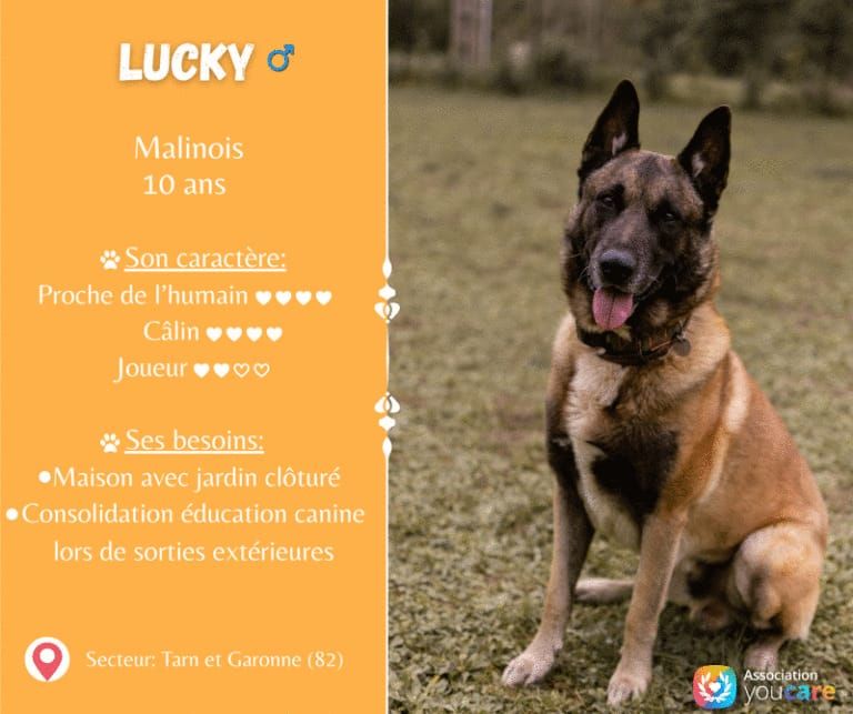 Très proche de l’humain et câlin, Lucky est un chien très attachant, et d’une extrême gentillesse.