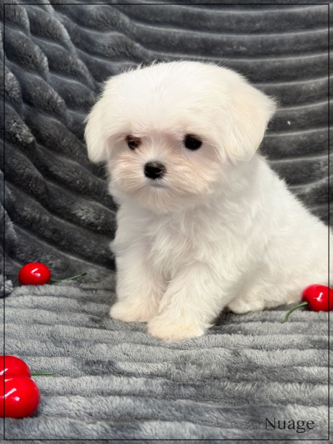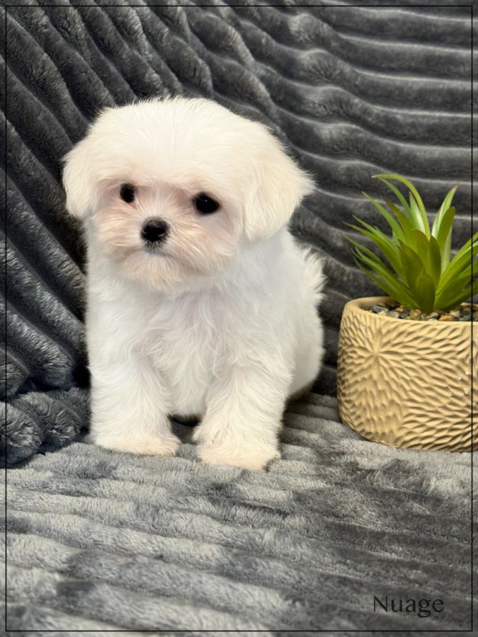 Disponible, Nuage, superbe mâle type Bichon Maltais issu de deux parents lof et confirmés. Nuage est né le 7 décembre dernier ,issu d’une portée de 3 bébés. Magnifique chiot ,petit nez court et tête ronde , fourrure très fournie lisse sans boucle ,Nuage possède une excellente pigmentation.Son papa pèse 2.4 kgs et sa maman 2,8 kgs ,tous deux avec de superbes origines. Nuage est vendu pucé 250269592437554, vacciné , certificat du vétérinaire , mutuelle offerte 2 mois, garanti jusqu’à l’âge d’un an en cas de maladie ou malformation héréditaire ou congénitale. Il est élevé dans un univers familial et fera le bonheur d’une famille .Nous sommes proches de Lyon . Facilités de paiement possible en 4 fois par CB. Suivi et conseils après la vente.