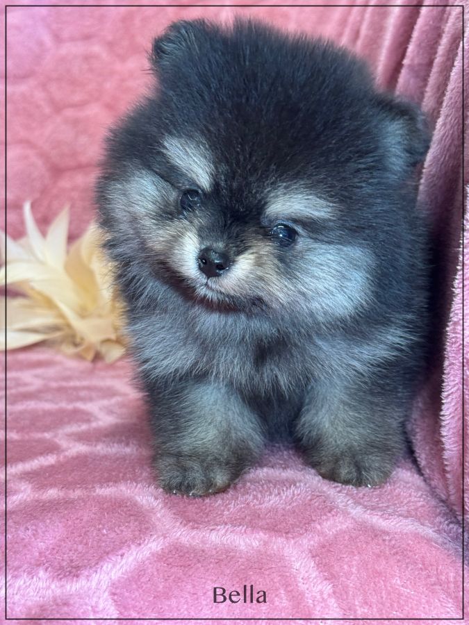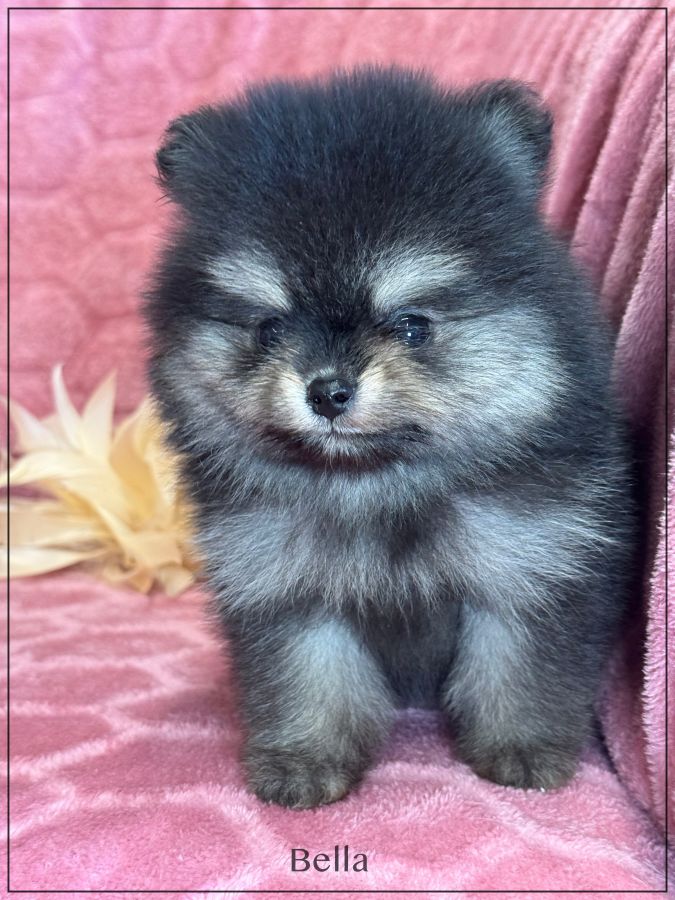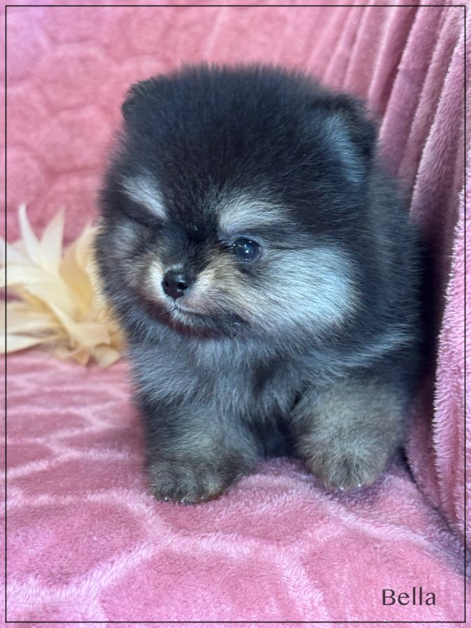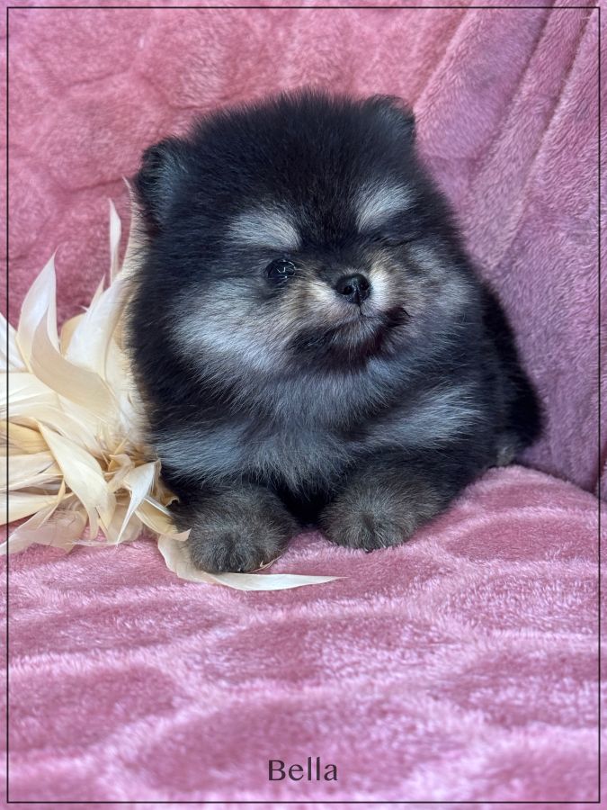A réserver, Bella, sublime femelle supposée nain poméranien, née le 17 janvier dernier, issue d’une portée de 4 bébés. Bella sera de couleur noir et feu .Disponible à partir de début avril. Papa et maman sont de taille naine et type poméranien tous les deux, lignées russes . Magnifique chiot ,type boo, belle ossature ,petites oreilles rondes rapprochées, nez typé (court et large),grosse fourrure ,un vrai ours .Bella est vendue pucée , vaccinée, lof, certificat de bonne santé ,mutuelle gratuite 2 mois, testée par ADN ,filiation ADN faite avec ses parents, garantie jusqu’à l’âge d’un an en cas de décès suite à des maladies ou malformations héréditaires ou congénitales .Elle est élevée dans un univers familial et fera le bonheur d’une famille. Elle vous enchantera de part son look, son caractère ainsi que sa fourrure en abondance, facile d'entretien. Nous sommes proches de Lyon .Facilités de paiement possible en 3 ou 4 fois par CB . Suivi et conseils après la vente.