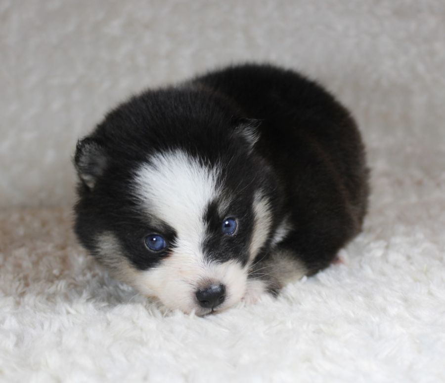 Nous vous proposons à la vente nos magnifiques chiots pomsky F5 petit gabarit aux yeux bleus lignée américaine.