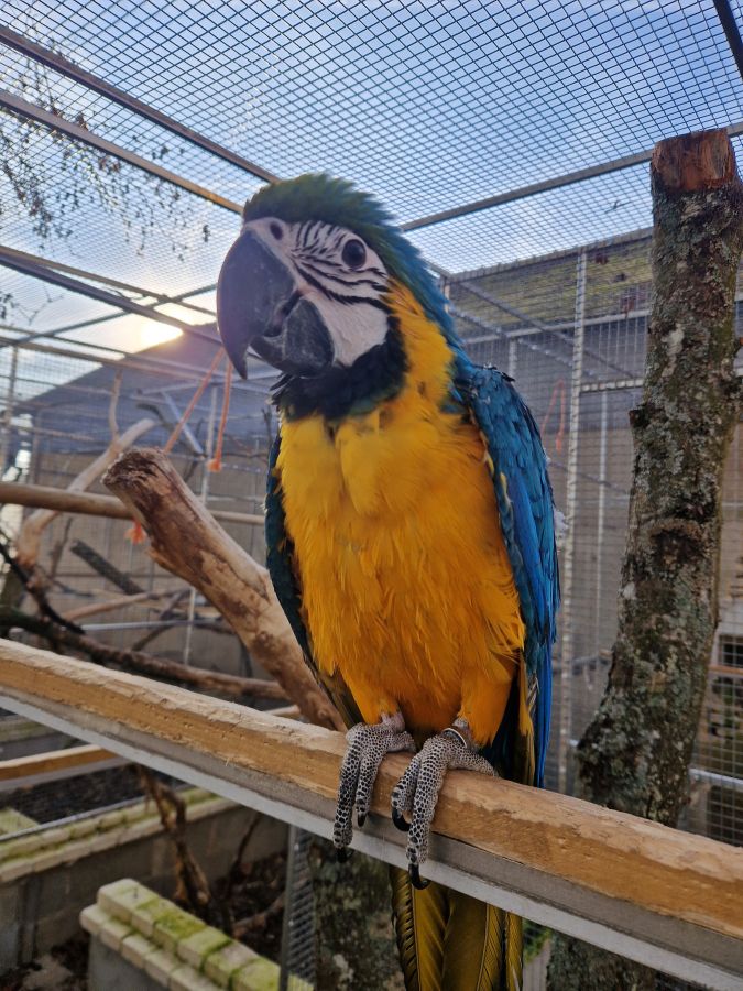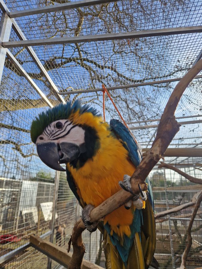 Vends une jeune ara ararauna femelle EPP née le 25 avril 2025.