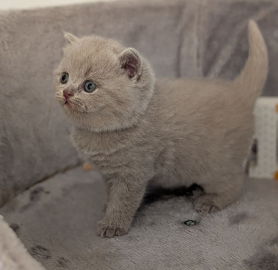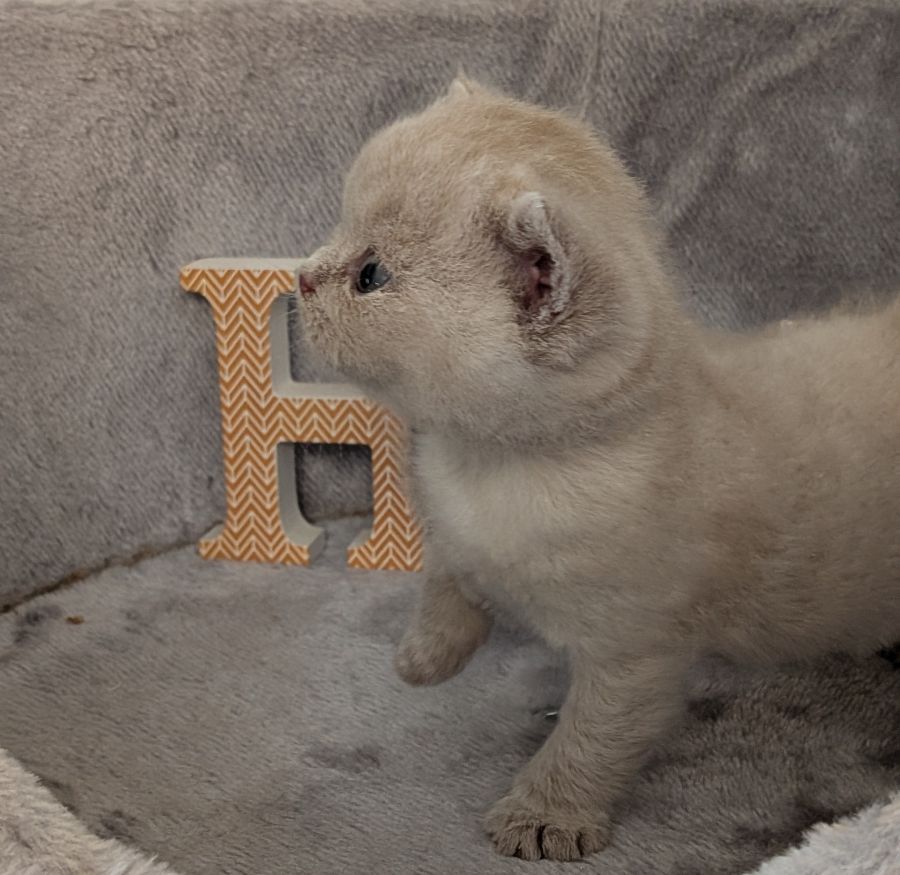 Père : Garfield dell'ambra flegrea, British Shorthair de couleur Lilas. Titré Double Champion.