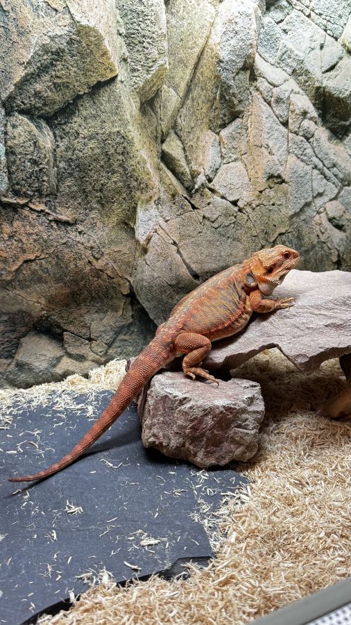À vendre avec son Terra pogona leatherback red mâle de juillet 2025 sub adulte mange très bien très sociable terra osb 120x60x60 quelques éléments de déco et gamelle eau et nourriture