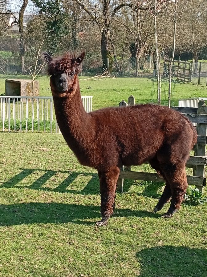Cherche une bonne famille avec des alpagas mâles pour Leeloo, alpaga chocolat hermaphrodite.