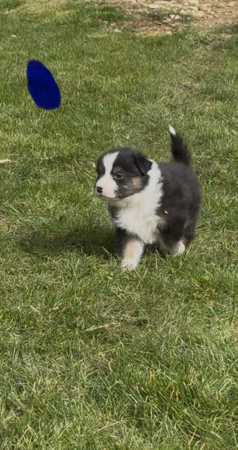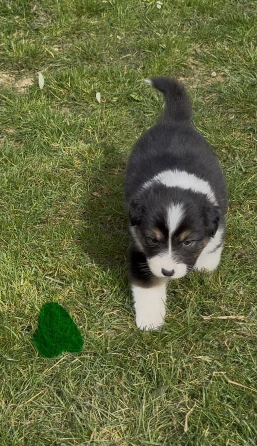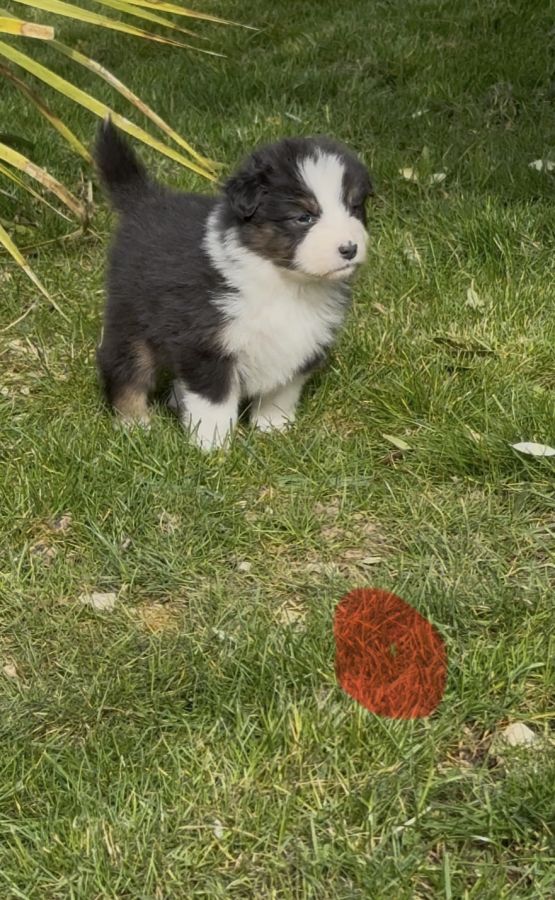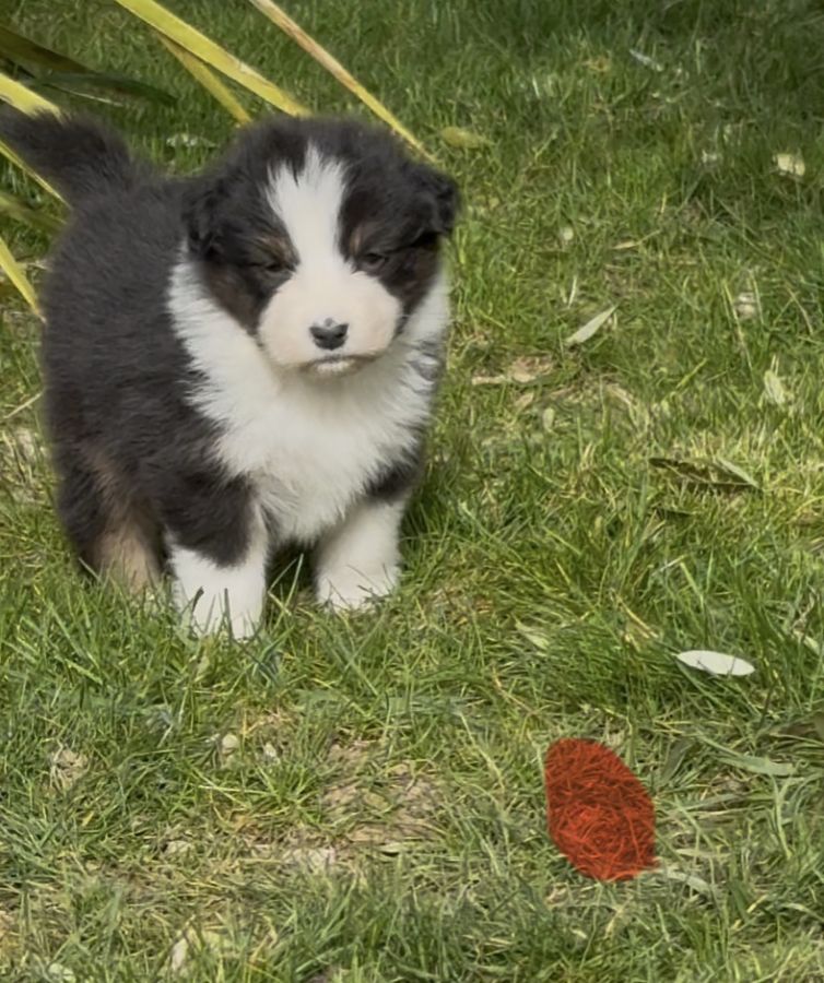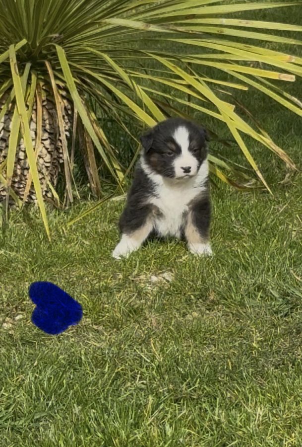 Disponibles à la vente, 4 chiots bergers australiens issus de parents LOF pucés, vaccinés et testés génétiquement.