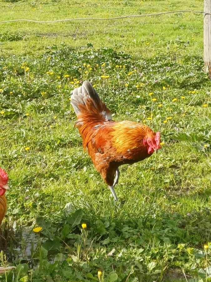 Vend jeune coq coq roux de 5 mois, nain, chante et commence a reproduire. En pleine santé et vif. Pour ornement familial uniquement et faire plaisir aux enfants. Tres gentil et sociable.