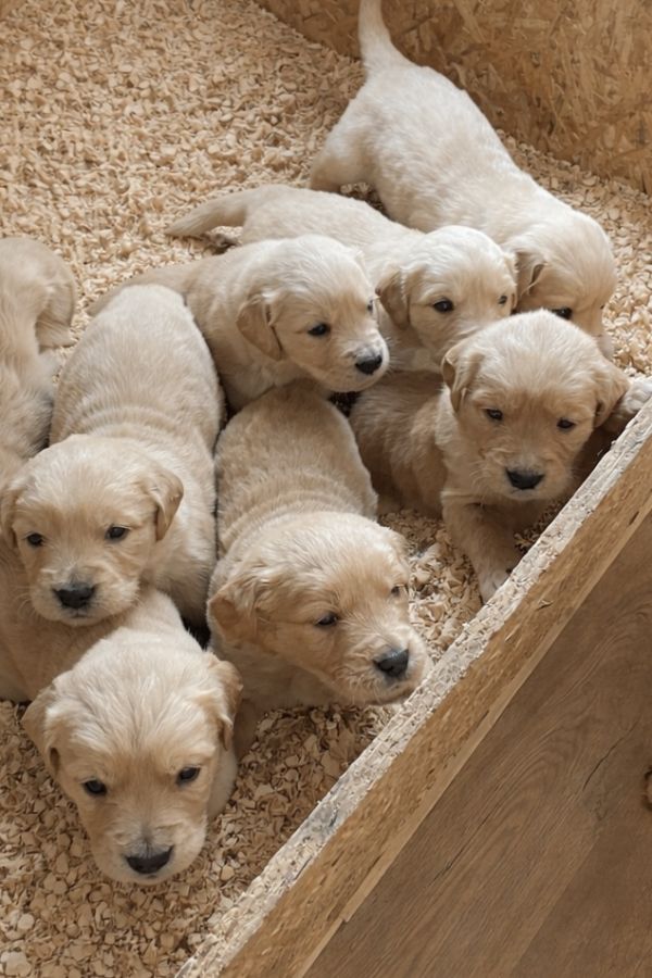 À réserver : adorables chiots de type Golden Retriever nés le 30 janvier 2026. Il y a 5 mâles et 3 femelles. Tous seront disponibles fin mars, ils seront entièrement vaccinés, vermifugés, pucés et élevés avec amour. Les parents sont visibles sur place. Pour plus d’infos ou pour réserver, contactez-moi en message privé
