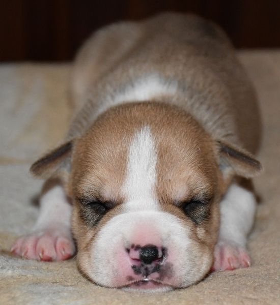 Chiots de couleur : Fauve avec marques blanches et tricolore.