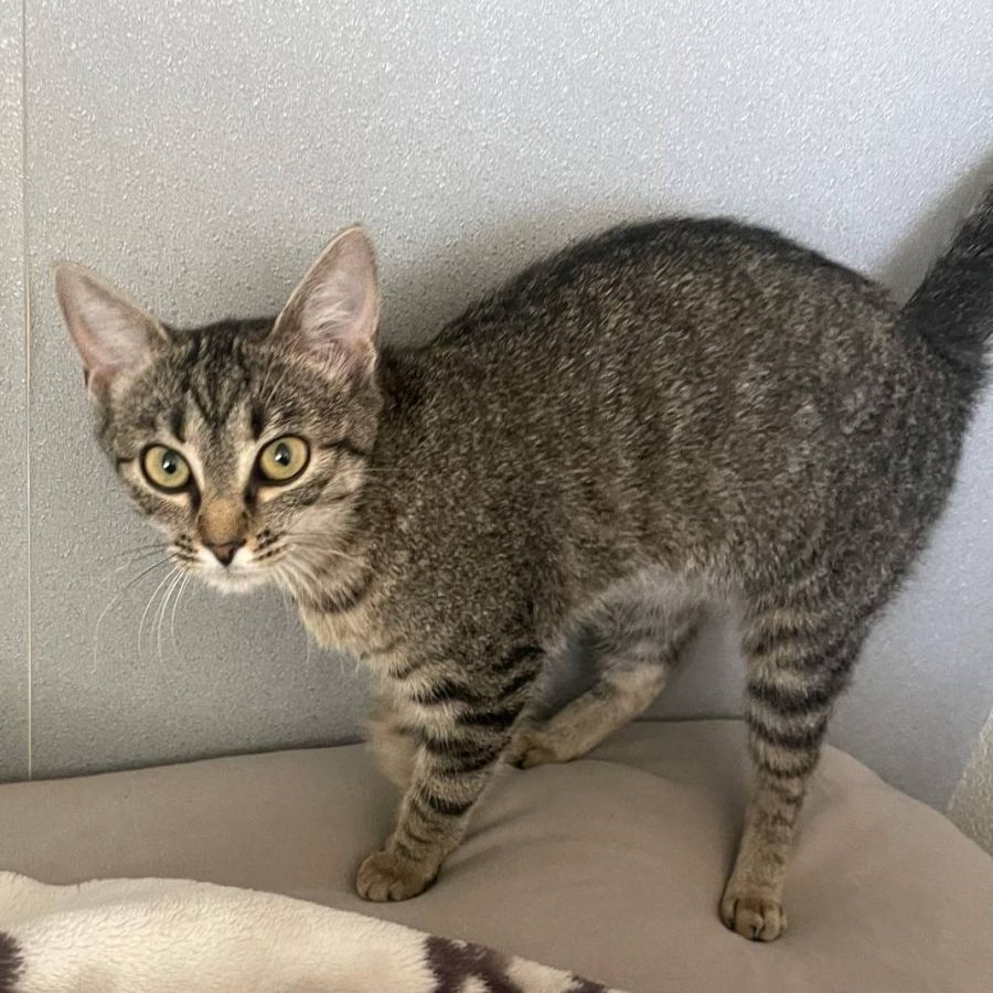 Cette jolie chatonne est très curieuse et pleine de vie. Elle adore jouer, explorer et s’intéresser à tout ce qui l’entoure.