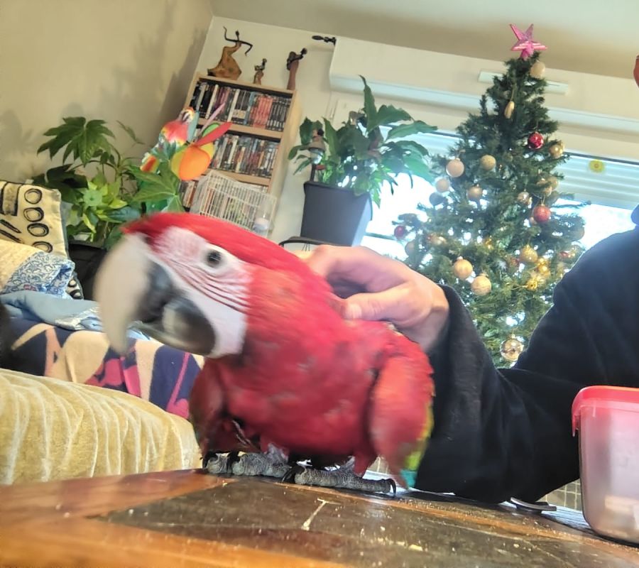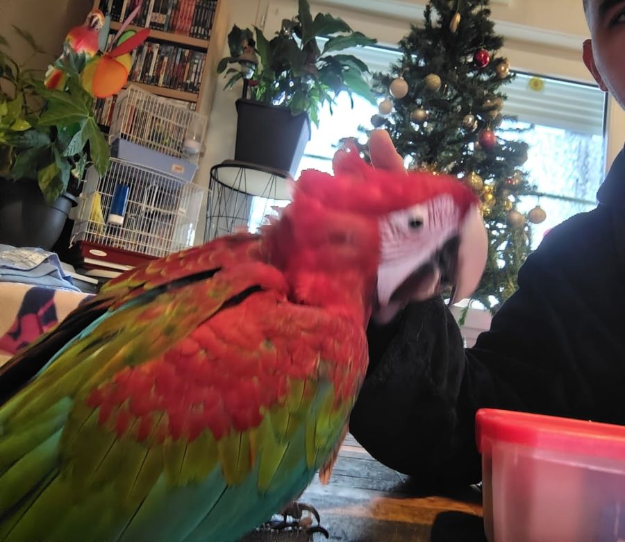 Ara chloroptere de 10 mois, pucé et certificat de bonne santé fait par le véto.
