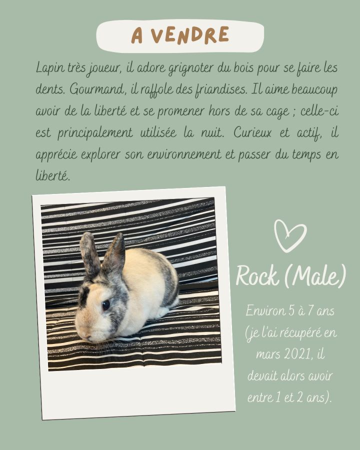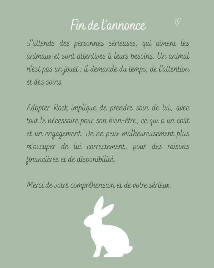 Je propose de donner mon lapin, à une personne ou une famille prête à lui offrir beaucoup d’amour et d’attention.