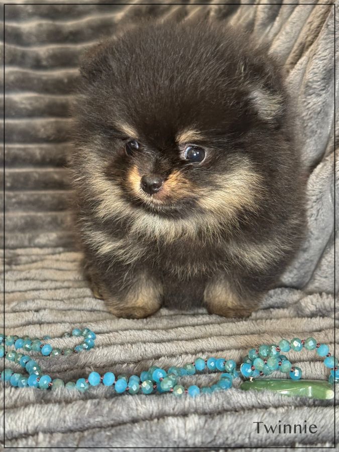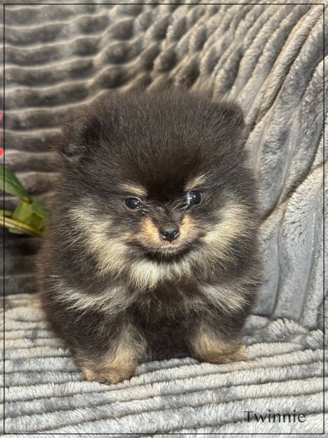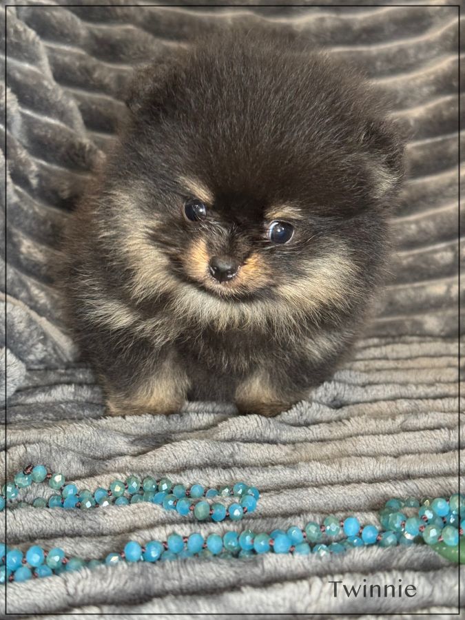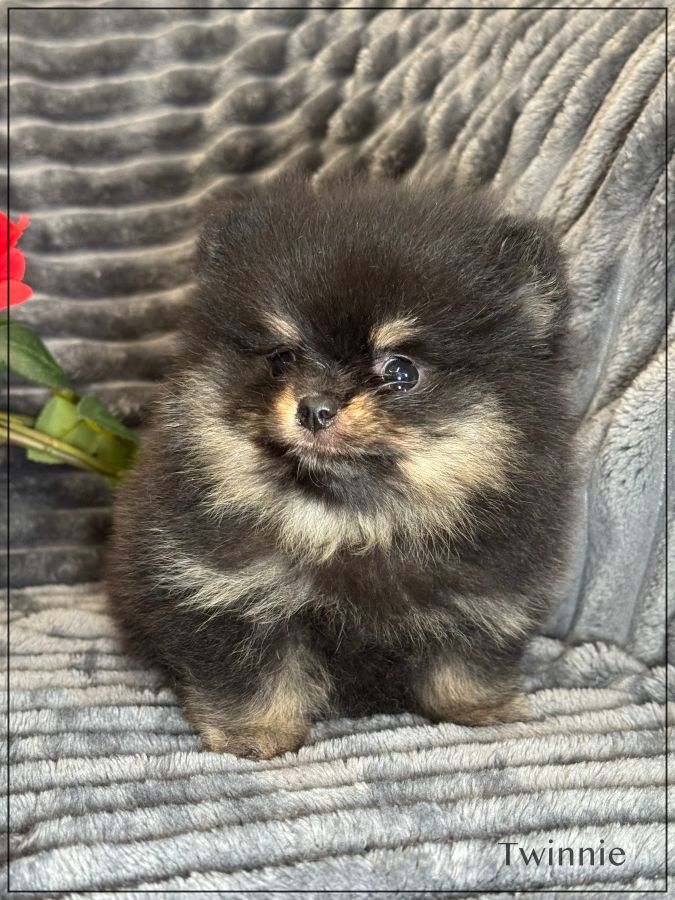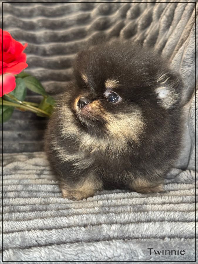 A réserver ,Twinnie, splendide femelle type spitz allemand supposé nain poméranien .Twinnie est née 25 janvier dernier ,issue d’une portée de 4 bébés. Elle sera disponible début avril. Twinnie sera de couleur noire et feu. Papa et maman sont de taille naine et type poméranien tous les deux, lignées russes .Parents testés ADN. Magnifique chiot ,type boo, belle ossature ,petites oreilles rondes rapprochées, nez ultra typé (court et large),grosse fourrure ,un vrai ours .Twinnie est vendue pucée ,vaccinée, certificat de bonne santé ,mutuelle gratuite 2 mois, testée par ADN et compatibilité faite avec les parents par ADN ,garantie jusqu’à l’âge d’un an en cas de décès suite à des maladies ou malformations héréditaires ou congénitales .Elle est élevée dans un univers familial et fera le bonheur d’une famille. Elle vous enchantera de part son look, son caractère ainsi que sa fourrure en abondance, facile d'entretien. Parents visibles. Nous sommes proches de Lyon . Facilités de paiement possible en 4 fois par CB. Suivi et conseils après la vente. Prix élevé ,pour connaisseur de la race uniquement