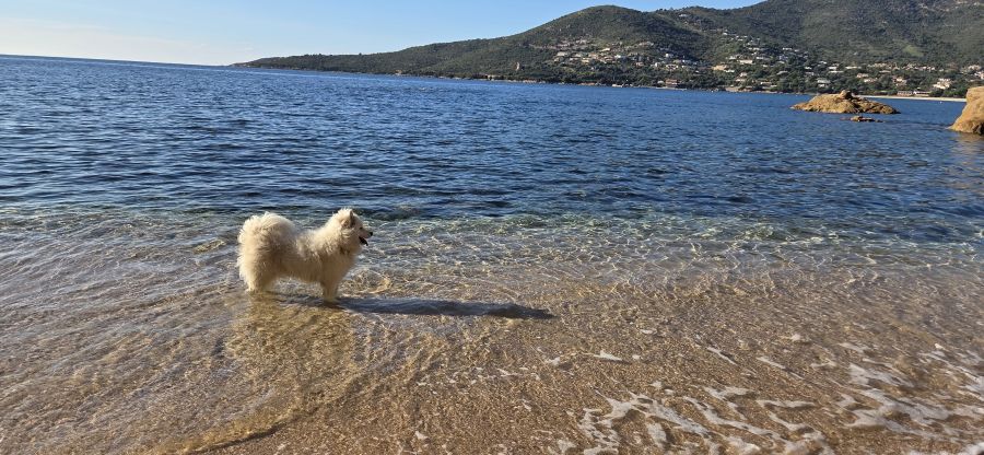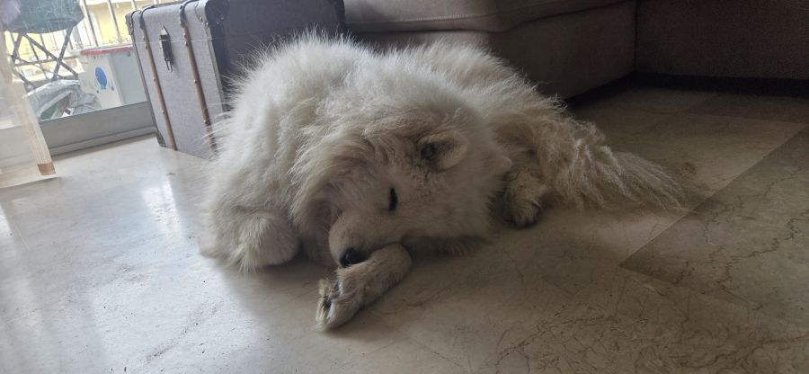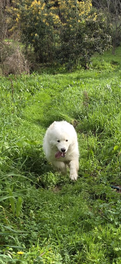 Adorable chien Samoyède, sociable, cherche foyer avec jardin.