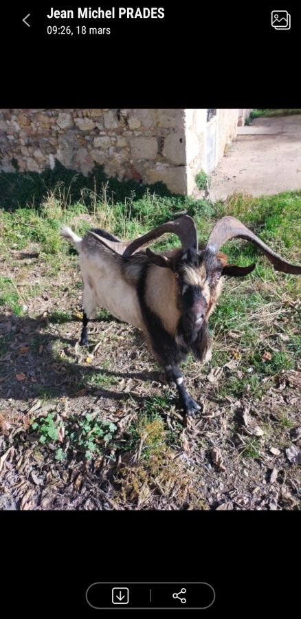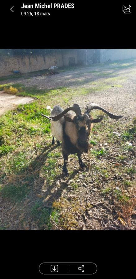 Donne bouc grandes cornes, 5 ans, non castré, non pucé . Animal sur Thézan les Béziers 34490