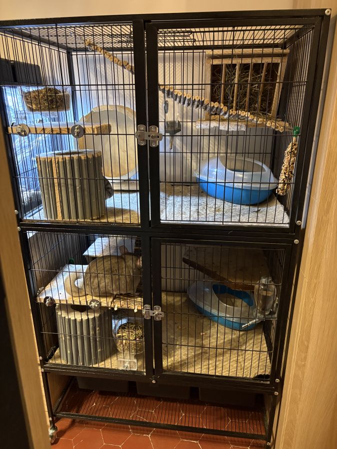 Actuellement ils sont dans une cage avec séparation car à la base Didi devait être un mâle mais c’était en fait une femelle et Chichi et Didi m’ont fait deux beaux bébés qui ont été placé ensemble dans une jolie famille.