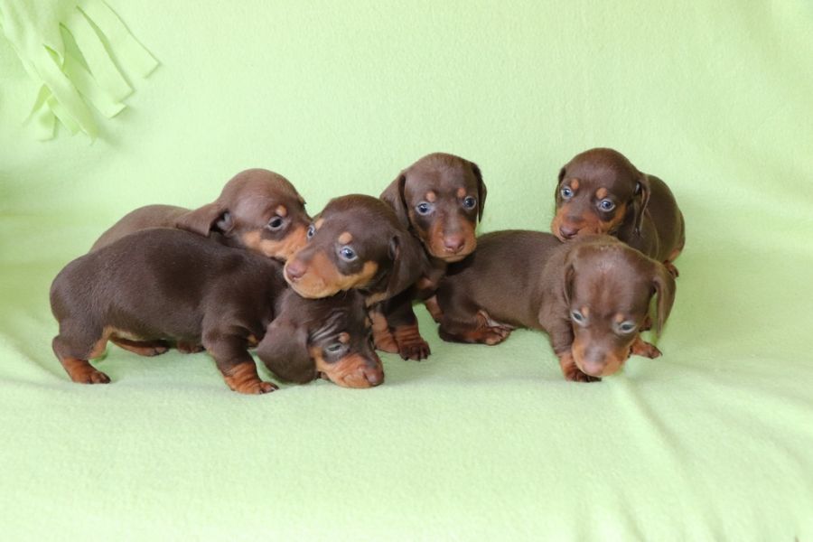 Nous avons une portée de chiots type teckel à poils ras nés le 14 fevrier 2026, ils seront disponibles, à partir du 11 avril 2026