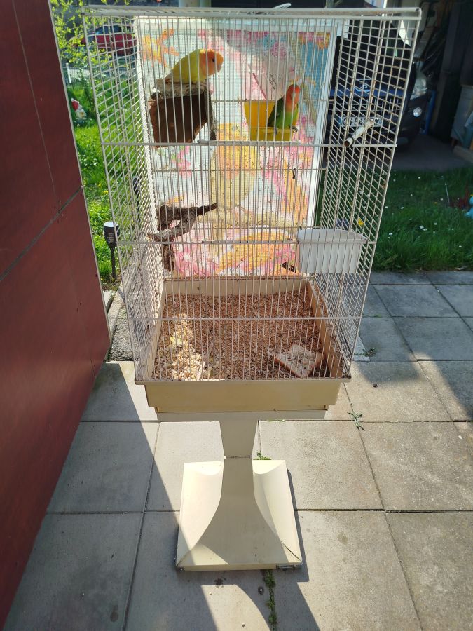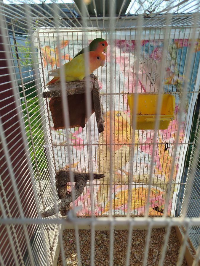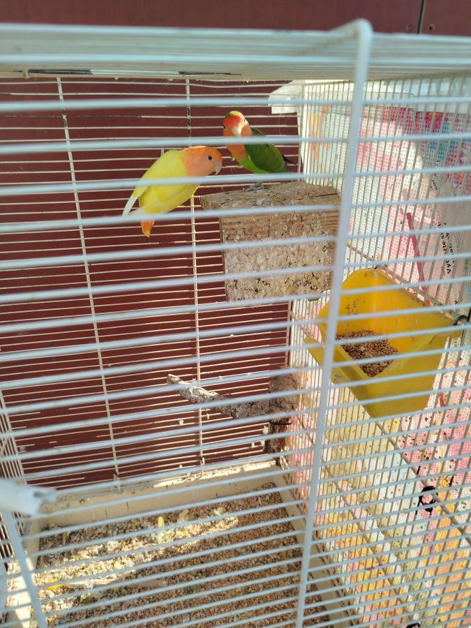 Vends couple inséparable de fisher + cage et accessoires avec pied de cage,prix négociable.Pour tous renseignements,n hésiter pas à me contacter..