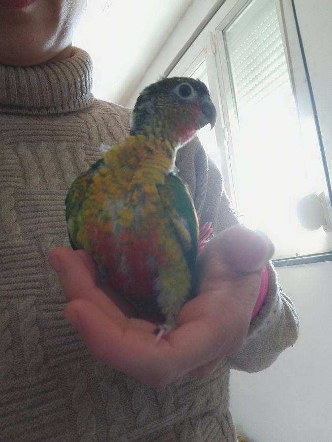 À réserver adorable bébé conure élevé à la main (EAM), disponible dans environ 1 mois 🥰