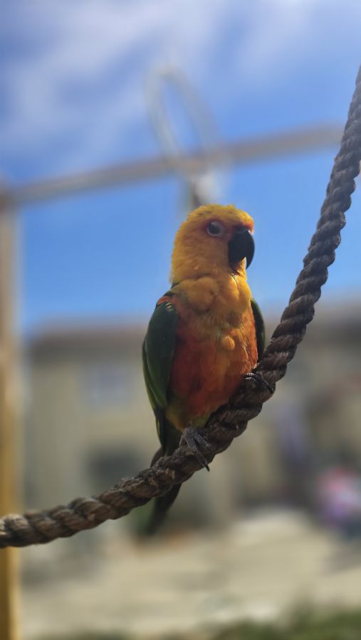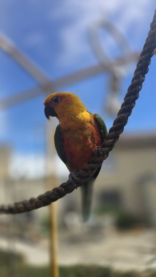 Bonjour, je vends pour cause de séparation ma femelle conure jandaya (ara a colier jaune)