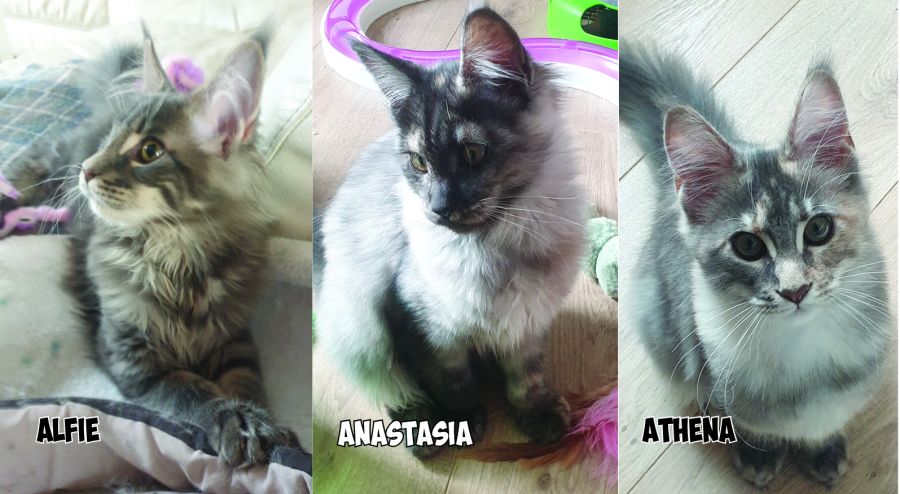 La chatterie des Séraphins vous présente Alfie petit mâle blue blotched tabby, Anastasia petite femelle black tortie smoke et Athéna petite femelle blue tortie blotched tabby nés le 09 Novembre 2025. Tous en pleine forme très affectueux et joueurs… Ils cherchent des familles sérieuses et aimantes.