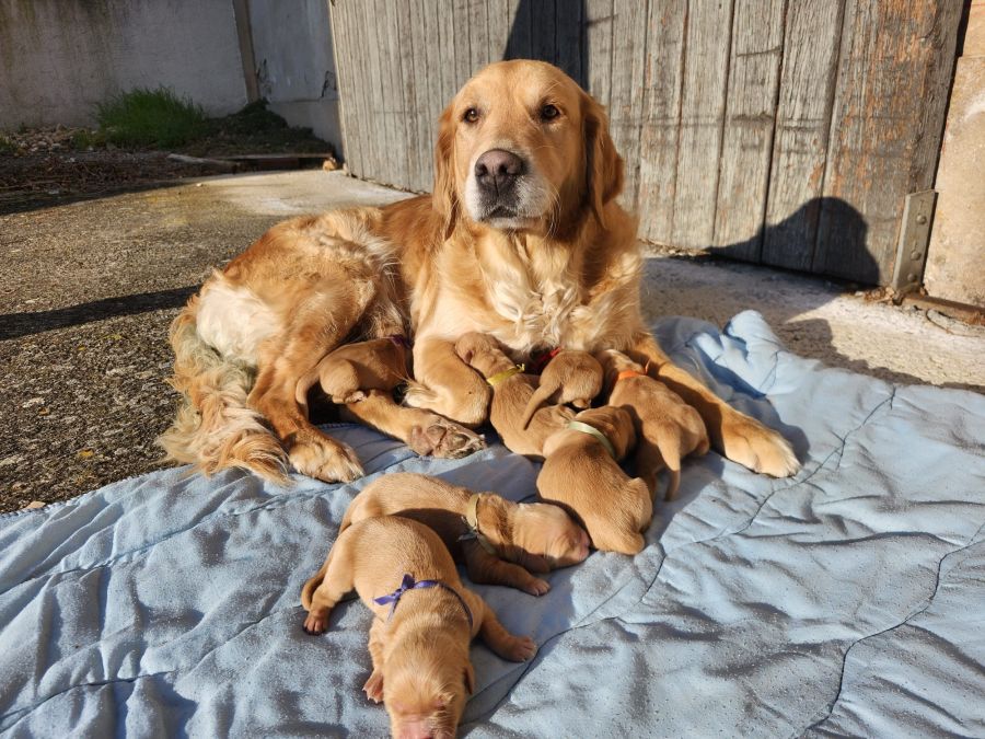De superbes chiots Golden Retriever LOF, issus de l’union de Tilley et Red Hawk, sont nés le 18 mars 2026.