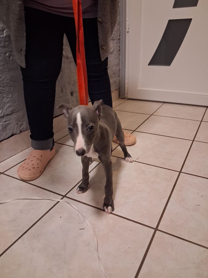 Bagheera est une petite femelle whippet bleue . Elle est très curieuse, dynamique et câline.
