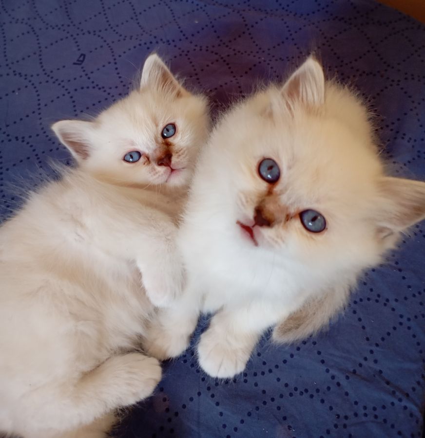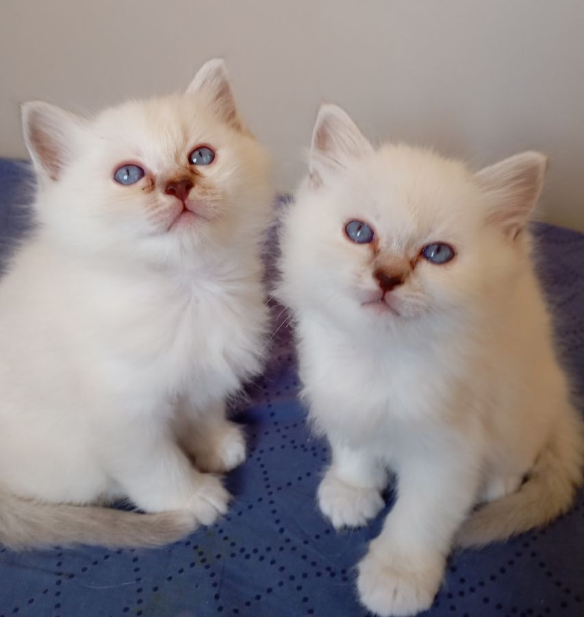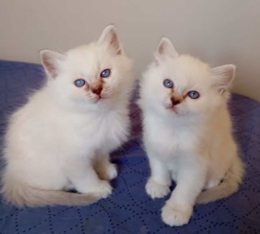 Elevage de Sacrés de Birmanie basé en Touraine. Deux chatons sont nés le 18 janvier, un mâle et une femelle, tous les deux de couleurs seal silver tabby. Ils grandissent "en famille" avec un accès a toutes les pièces de la maison, pour une parfaite sociabilisation. Comme tous leurs frères et sœurs avant eux, ils sont curieux, joueurs et câlins. Ils ont également les mêmes caractéristiques physiques: grands yeux bleus intenses, petites oreilles et joli poil cotonneux.