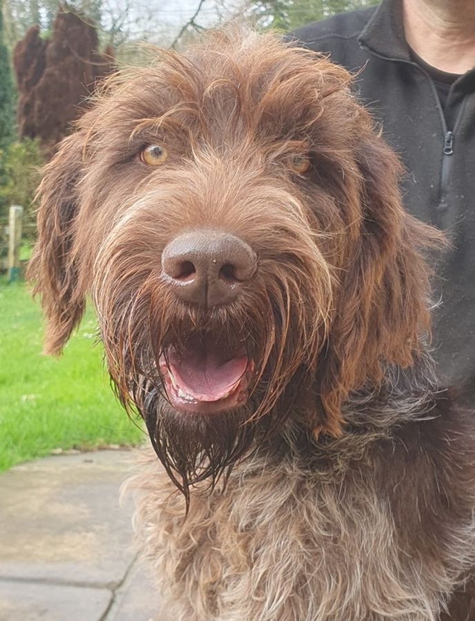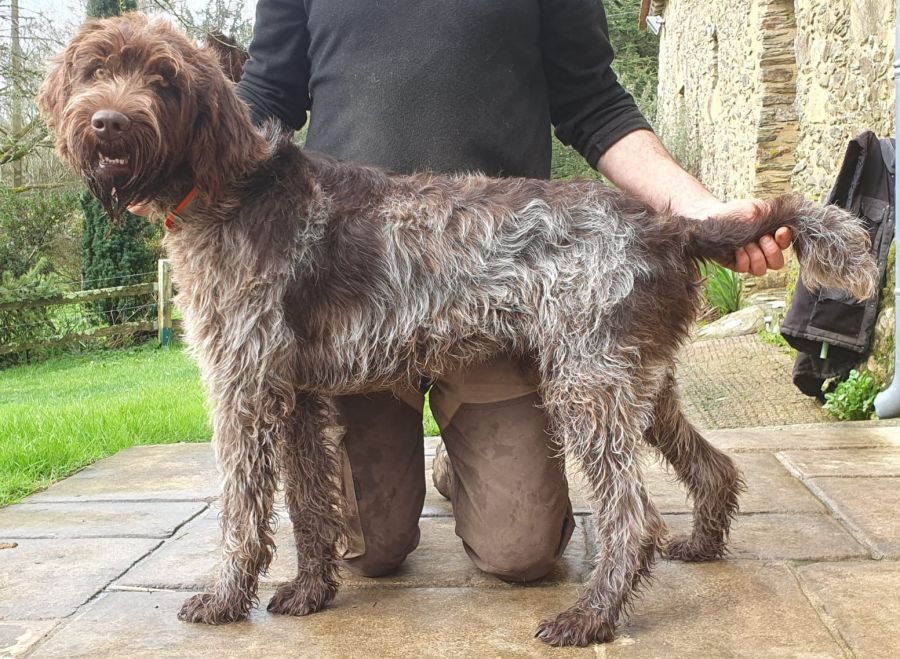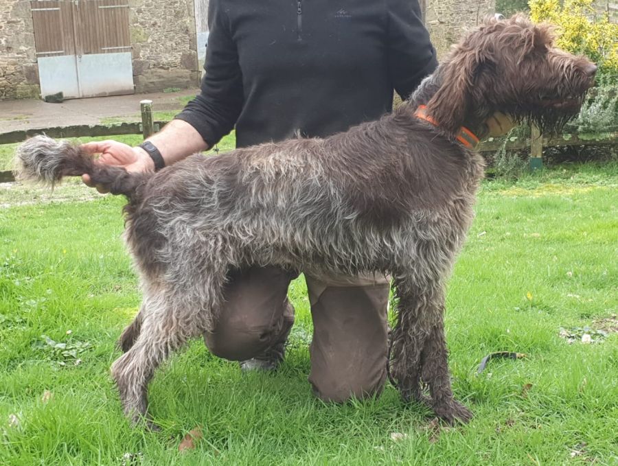 Superbe Griffon Korthals mâle de 17 mois, Volt des Etangs de la Bourie, inscrit au LOF et confirmable, qui m’a été confié par son maitre qui ne peut plus s’en occuper pour des raisons de santé. Volt est un chien actif et énergique, extrêmement affectueux et proche de ses maîtres. Il revient parfaitement au rappel et est très à l’écoute des ordres. Il est parfaitement habitué à la vie à la maison, et est très sociable avec les autres chiens (mâles ou femelles). Il est enjoué et aime la compagnie, mais peut complètement rester seul dans la journée. Sa mère : Ozzie, Dysp AB, chienne calme et équilibrée. Son père : Norton des Marais de Suire, étalon côté 2, TAN, Dysp AA, excellent en exposition, tout en force, superbe poil dur et « autonettoyant » (meilleur poil régionale d’élevage 2020), chien très calme et sociable. Volt est en pleine santé et à jour de ses vaccinations.