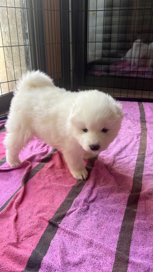 Chiots samoyède a réservé. Née le 15 février 2026 2 femelles 3 mâles Un acompte sera demandé pour la réservation ils seront vaccinés puces et un certificat de bonne santé délivré par le vétérinaire. N’hésitez pas à demander des photos.