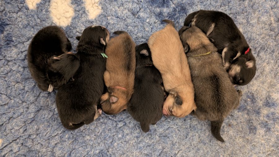 Les chiots sont manipulés quotidiennement et bénéficieront de différents petits exercices afin de favoriser leur bon développement physique et émotionnel.