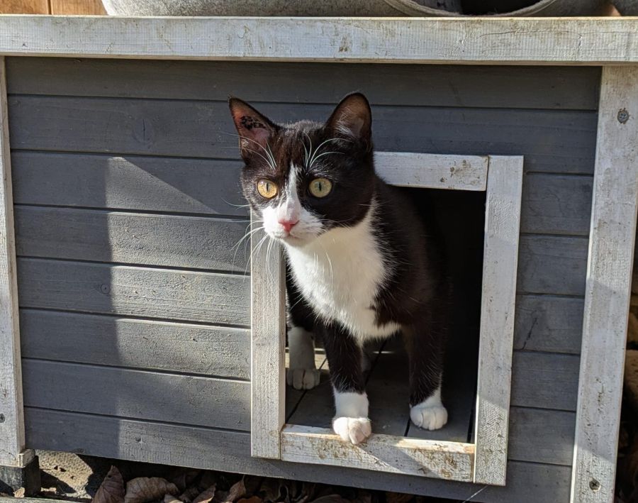 WEB est une adorable petite chatte noire et blanche avec la queue toute courte