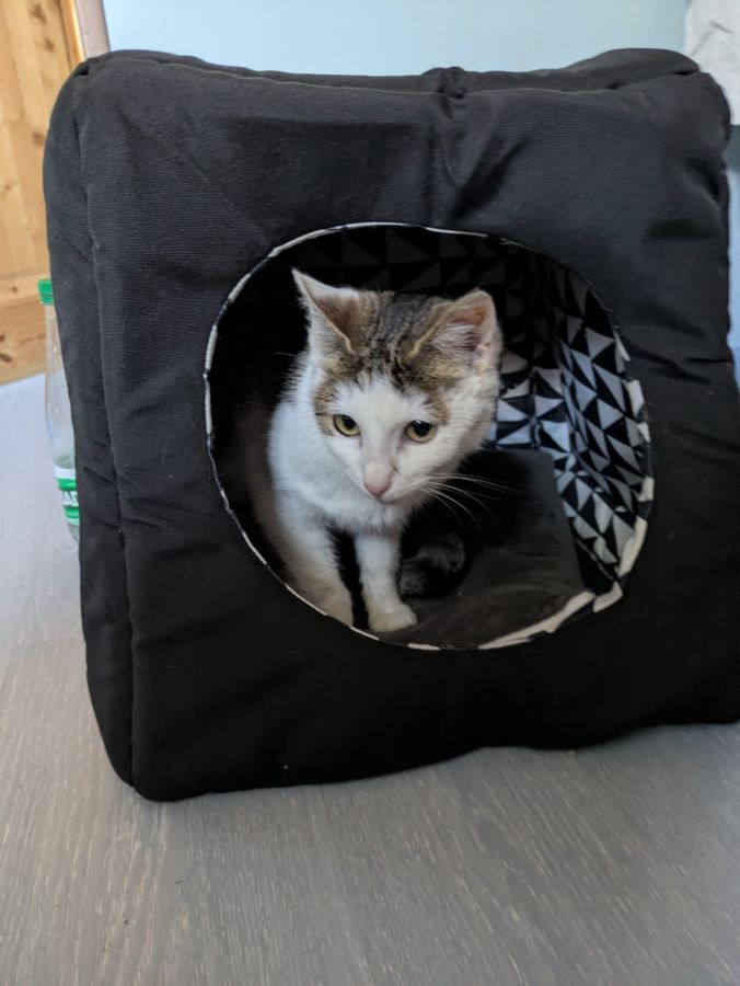 Elle est très à l'aise, joueuse, aime les caresses et préfère être seule qu'avec d'autres chats