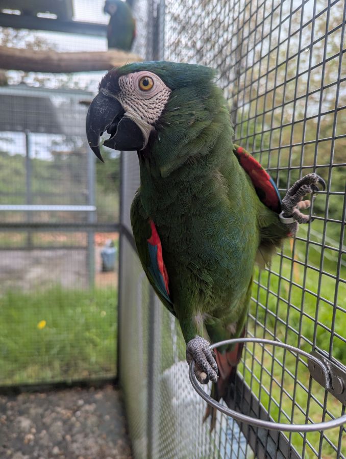 Couple formés de Ara Sévère, le mâle est né en 2020 et la femelle en 2021. Maturité sexuelle pas encore atteinte mais ne devrait plus tarder. Oiseaux qui vivent en volière à l'année en exterieur dans le GERS 32290. Bagués, Sexage Adn et test de santé. Oiseaux EAM au départ mais laissé tranquille en volière pour but de reproduction. Prenne des cacahuètes à la main et papotent beaucoup