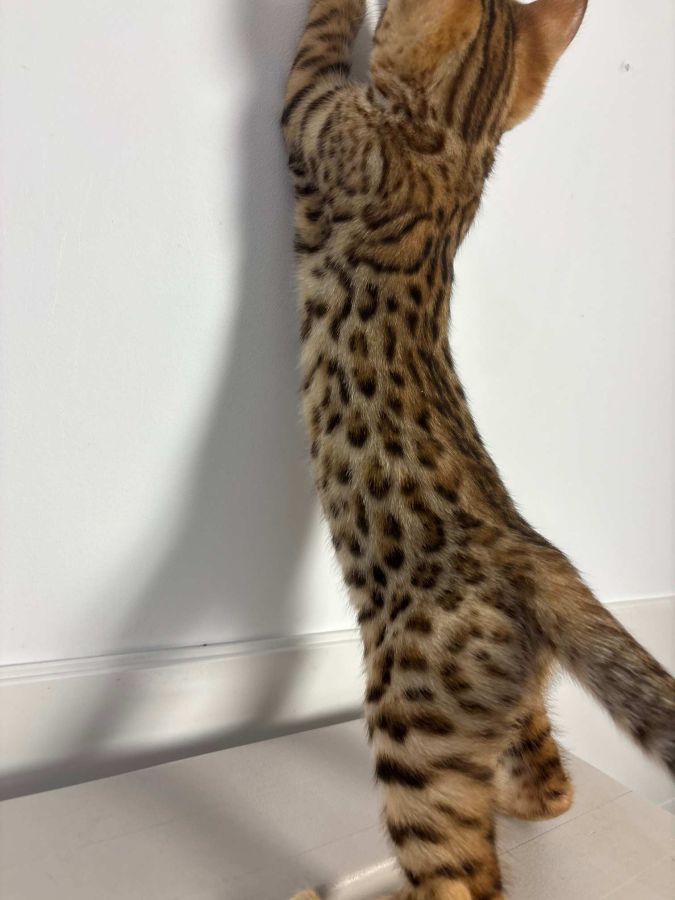 Né le 25 Janvier 2026. Nous sommes éleveurs de Bengals depuis 9 ans et nous nous assurons que les chatons rejoignent leur foyer en excellente santé(certificat vétérinaire) et bien sociabilisés. Ils partent à partir de 3 mois pucés, déparasités et vaccinés avec un carnet de santé , une visite au préalable, délivré par notre vétérinaire référent.