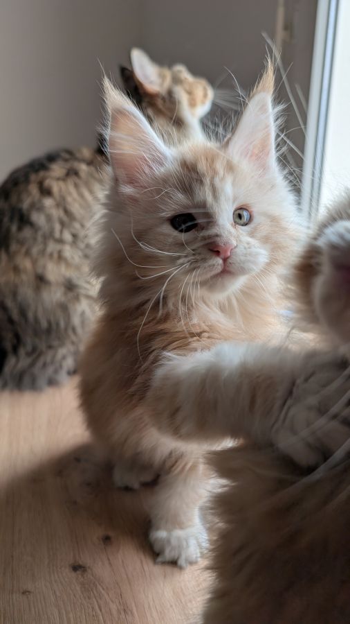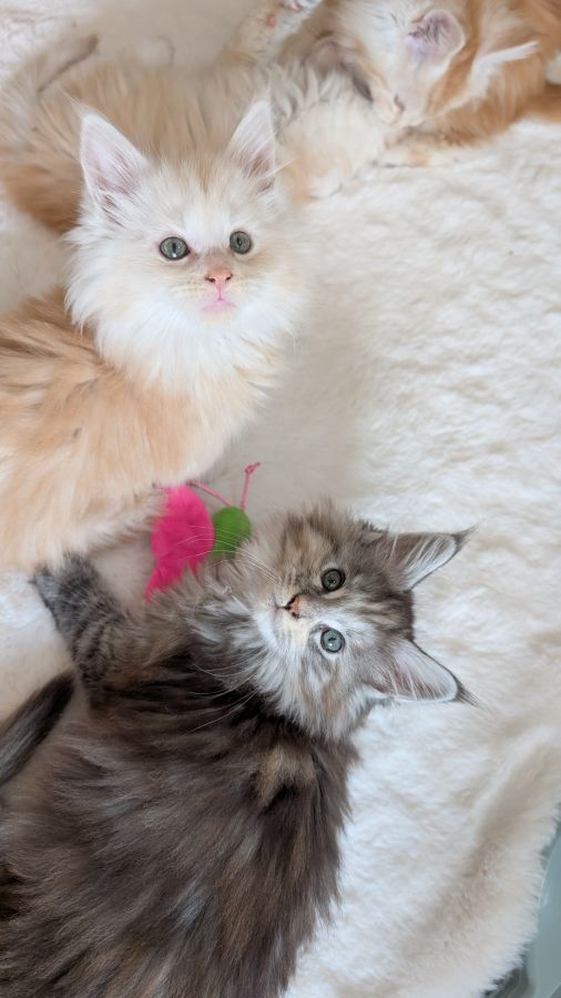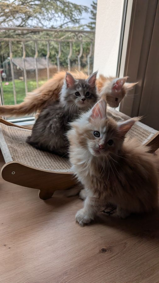 La Chatterie de la Vallée des Thermes, élevage familial et professionnel, vous présente ses chatons Maine Coon LOOF, nés le 16 janvier 2026, issus de parents rigoureusement sélectionnés et testés pour les maladies génétiques liées à la race.
