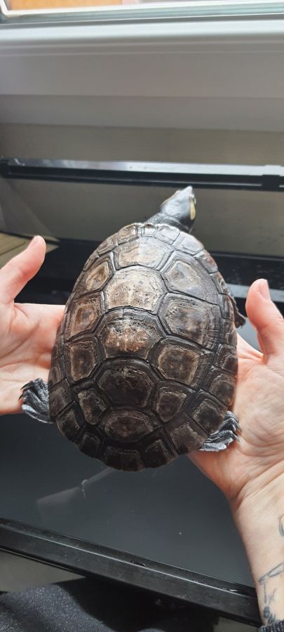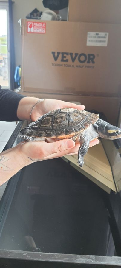 Tortue de 4 ans Cinosterne Caréné Ne grandit plus environ 11 ou 12 cm En parfaite santé très active .