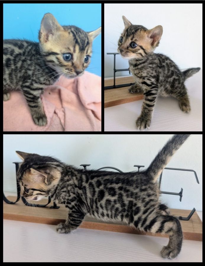 3 adorables chatons Bengal Loof, nés le 25/02/265, cherchent les futures familles qui sauront en prendre soin pour leur donner plein d’amour, de câlins et de ronrons en retour !!