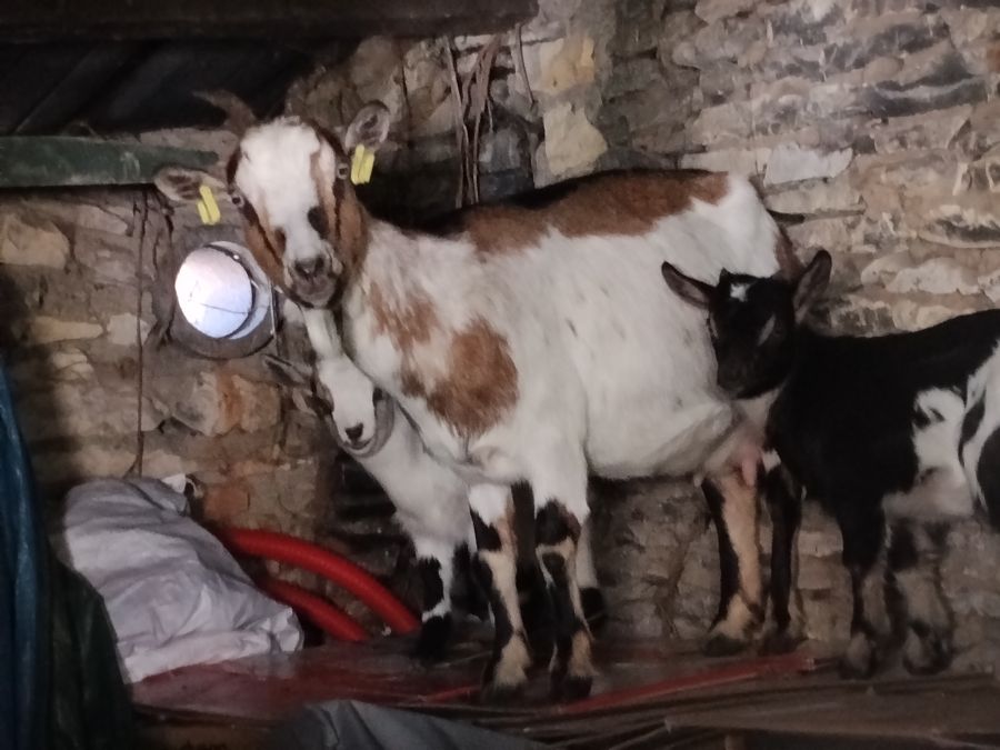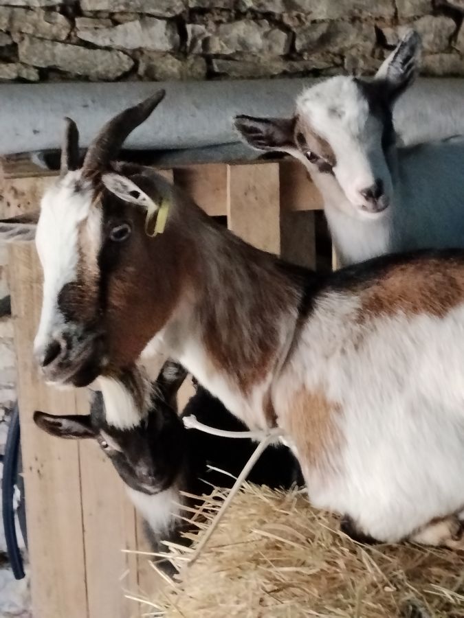 bonjour. Je propose 1 chèvre naine de 18 mois avec les yeux bleus et ses 2 chevreaux de 2 mois, un mal et une femelle à l'adoption, faute de suffisamment de place