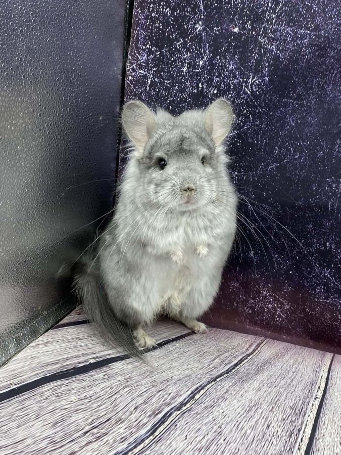 L elevage Chinchilla Courcellois vous propose Un magnifique jeune mâle Chinchilla Saphir porteur blue Diamond Angora de pédigrée.