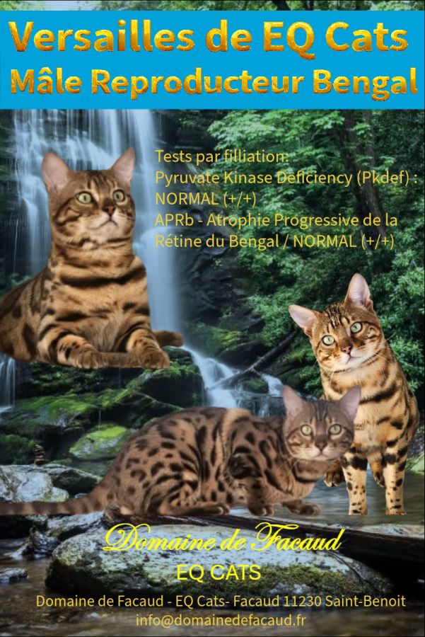 Le Domaine de Facaud a le plaisir de proposer pour saillie son superbe étalon Bengal, Versailles de EQ Cats, un mâle reproducteur aux lignées prestigieuses et au type sauvage affirmé.
